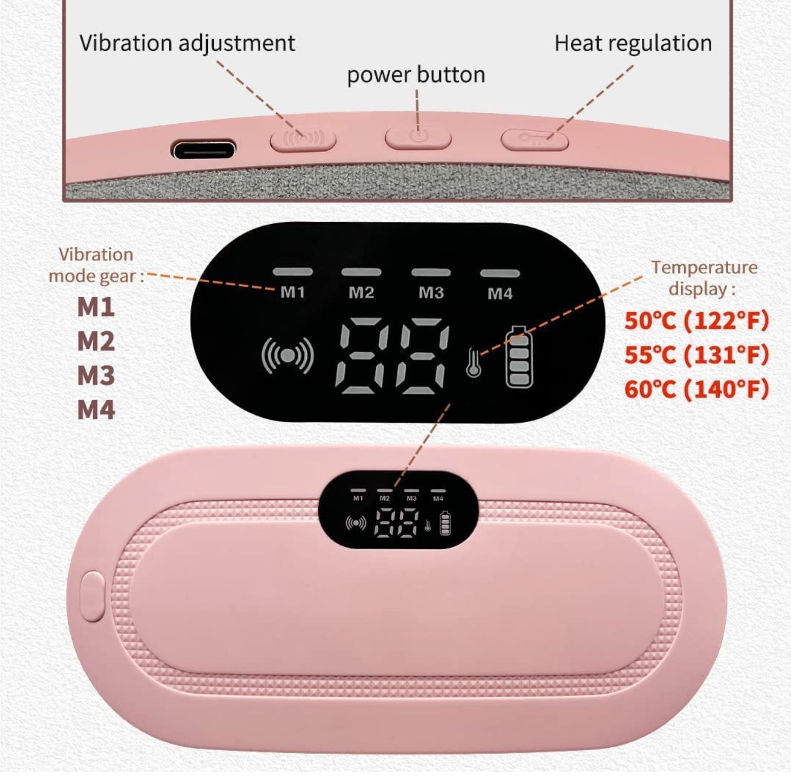 TERAPIA DOBLE DE ALIVIO: Combina calor y masaje para un efecto potente. Cuenta con 3 Niveles de Calory 4 Modos de Masaje Vibratorio que puedes ajustar según tus necesidades reales. ¡Alivio efectivo del dolor de vientre y cólicos!
