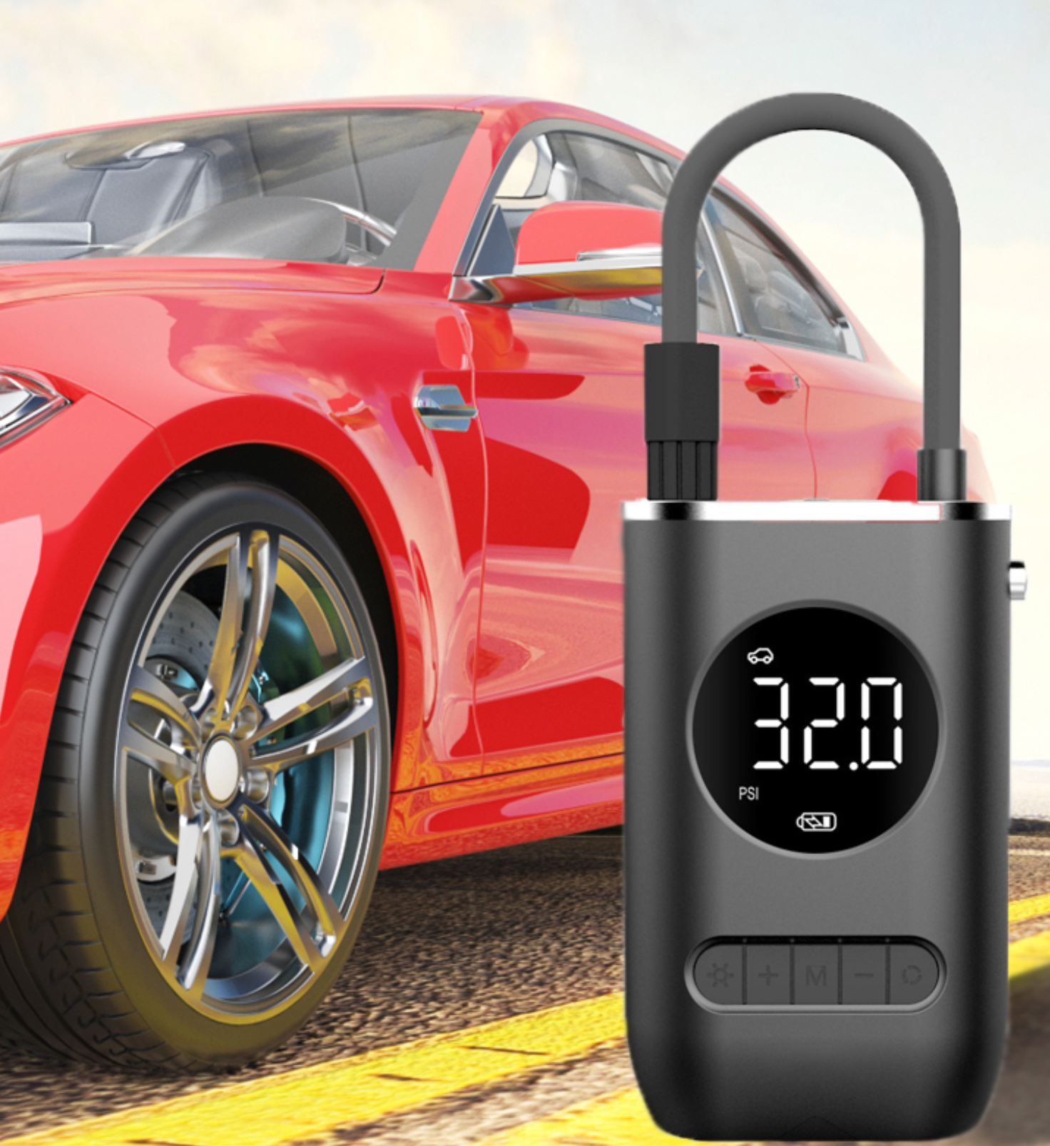 POTENCIA PORTÁTIL: Capaz de alcanzar 150 PSI, perfecto para inflar neumáticos de coches, motocicletas, bicicletas y balones.